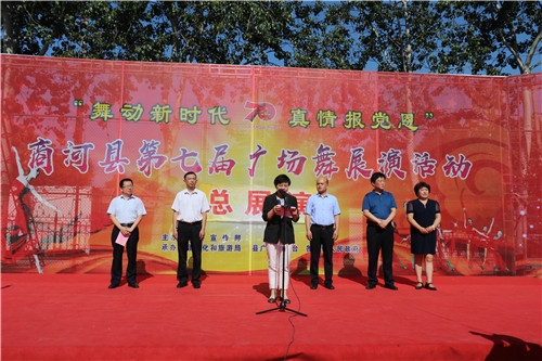 为迎接中国共产党建立98周年,7月1日,“共圆中国梦·舞动新商河”商河县第七届广场舞展演成功举办,全县广场舞爱好者用舞蹈来讴歌伟大的中国共产党。副县长崔泽花出席活动。
