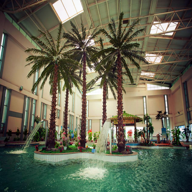 温泉中心分为室内温泉、室外温泉及休息保健三个区域。室内温泉包括按国标建造的温泉泳池,具有塑身、保健、按摩功能的SPA池,素有皮肤清道夫之称的“亲亲鱼”池,具有美容养颜功能的花瓣池区及活血通络的酒泉池区。室外温泉有强身健体、调节人体机能、增加抗病能力的国医馆汤池区,具有柔性按摩功能和精油沐浴功效的凤吕汤池区。同时为丰富和满足宾客的需求,温泉基地新引进了太空舱等温泉项目,丰富了温泉的附加产品。各个温泉池功效和温度都各有不同,可以依据自己身体状况来选择最合适的温泉。