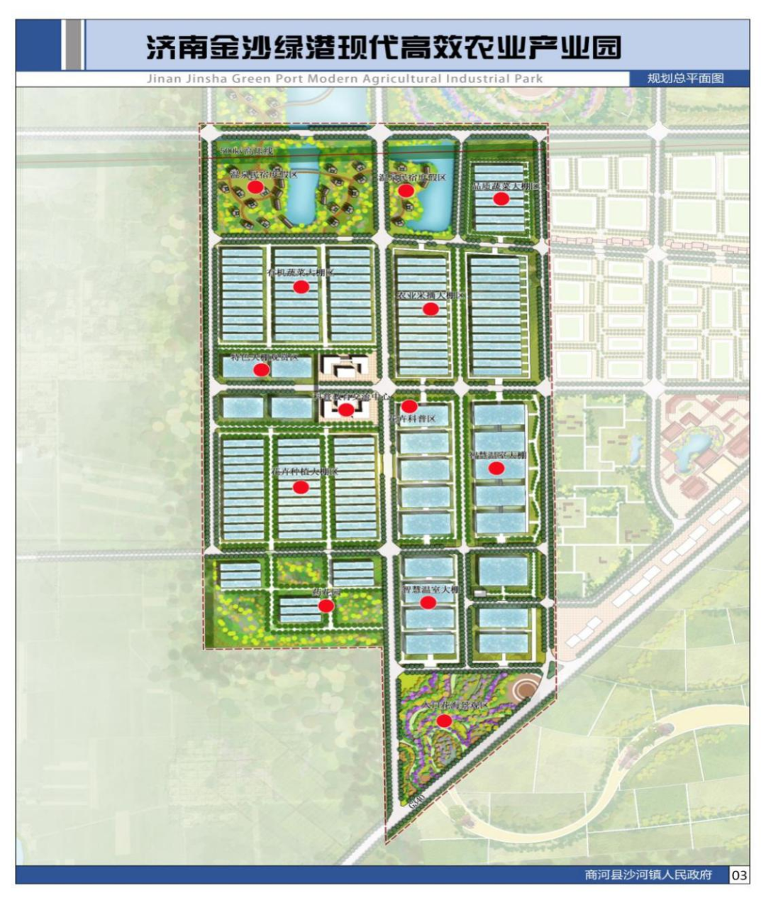 项目区规划有商河县沙河工业园、济南市金沙绿港现代高效农业产业园和瓜果蔬菜、中草药种植区,符合沙河镇总体规划。商河县沙河工业园于2020年5月份获得商河县人民政府批复,规划面积98.5公顷,已入驻企业10家。济南市金沙绿港现代高效农业产业园已初具规模,建成联栋智能温室和日光温室20万平方米,种植小西红柿、草莓、樱桃、火龙果等精致果蔬。园区内种植露天蔬菜和种草药800余亩。我们将全力打造设备齐全,配套完善,产业群集,三产联动,融合发展的田园综合体。