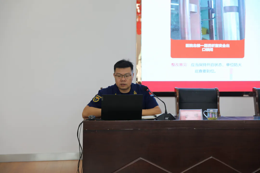 培训会上,县消防救援局监督四组组长宫顺针对前期随机抽查督导10家医疗机构“解剖式”现场检查中发现的重点区域、重点部位突出问题,逐项解读分析,提出整改指导性建议,指导各单位对照被查问题主动自查整改,严格落实安全生产主体责任。