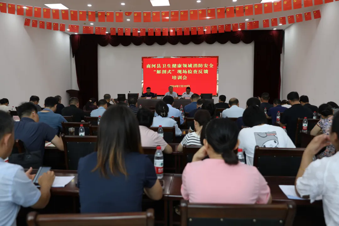 商河融媒7月20日讯:7月19日下午,全县卫健领域消防安全“解剖式”现场检查反馈培训会召开。会议邀请县夏季高温期间消防安全隐患督查检查第三督导组到会指导。县卫生健康局党组书记、局长孟庆利出席会议并讲话,局党组成员、县计生协常务副会长吴如明主持会议。